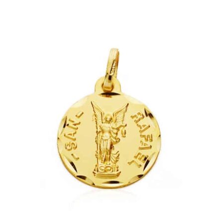 Medalla San Rafael 14 mm Oro Amarillo 18 Quilates Borde Tallado
