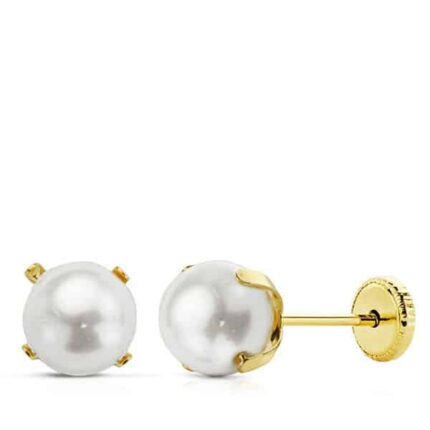 Pendientes Niña Comunión 6 mm Oro Amarillo 18 Quilates Perla Cultivada Garras