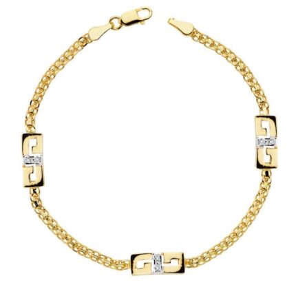 Pulsera Comunión 17 cm en Oro Bicolor 18 Quilates Grecas y Circonitas
