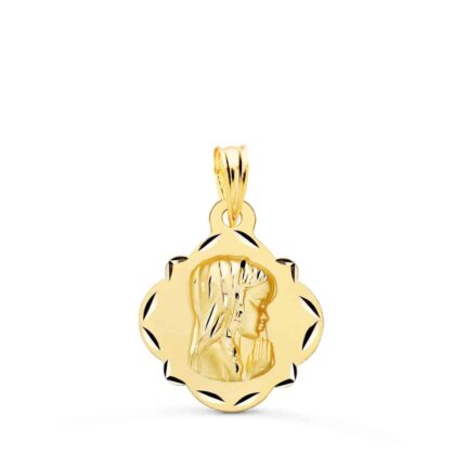 Medalla Virgen Niña 23 x 20 mm en Oro Amarillo 18 Quilates Calada y Tallada