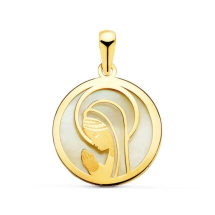 Medalla Virgen Niña 17mm en Oro Amarillo 18 Quilates Nácar