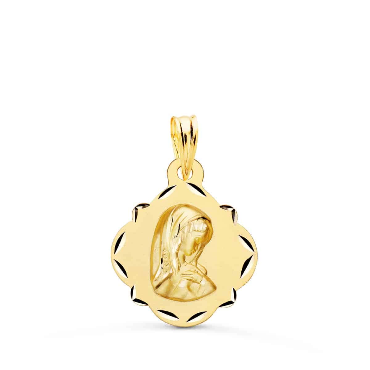 Medalla Virgen Niña 23 x 20 mm en Oro Amarillo 18 Quilates Calada y Tallada