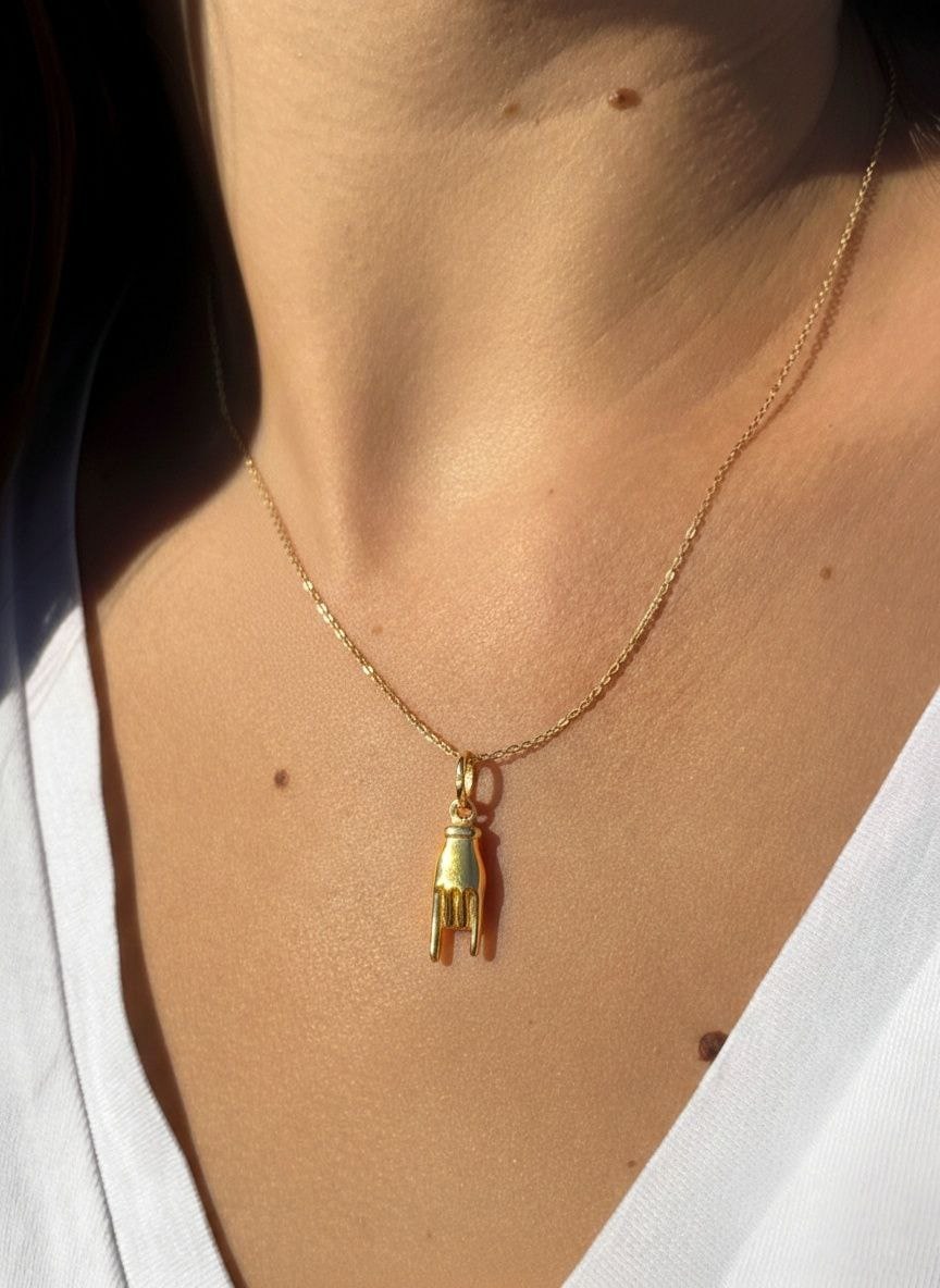 Este colgante está fabricado íntegramente en Oro de 18 kilates. Su diseño representa la icónica mano italiana, un símbolo tradicional de protección y buena suerte. La pieza cuenta con una terminación lisa brillo de alta calidad que resalta la elegancia del oro amarillo. Con unas dimensiones de 16 x 5,5 mm, es una joya ligera y versátil, ideal para lucir a diario o como un regalo con un significado especial.