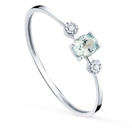 Anillo Diamante 0,04 ct Oro Blanco 18K y Aguamarina