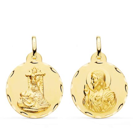 Medalla Escapulario 20 mm Virgen de las Angustias y Corazón de Jesús en Oro Amarillo 18K Tallada