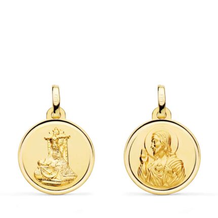 Los escapularios son todo un clásico de siempre. Esta tradicional medalla con la Virgen de las Angustias y Corazón de Jesús, está realizada en Oro amarillo de 18 kilates, con 16 mm de diámetro, preciosos tallados laterales y terminación mate brillo.